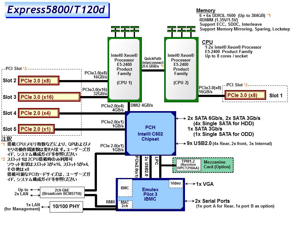 1x PCI Express 3.0 (x16レーン, x16ソケット) (フルハイト、300mm以下) 2x PCI Express 3.0 (x8レーン, x8ソケット) (フルハイト、300mm以下) (1CPU構成時は1スロットのみ使用可能) 1x PCI Express 2.0 (x4レーン, x8ソケット) (フルハイト、300mm以下) |