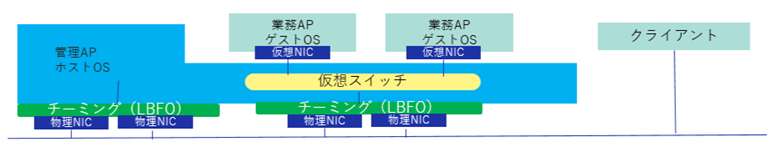 注:この設定を行う場合、仮想スイッチに接続するネットワークアダプタ(LBFOでチーミングしたネットワークアダプタ)とは別に、ホストOS専用のネットワークアタプタが必要になります。 |