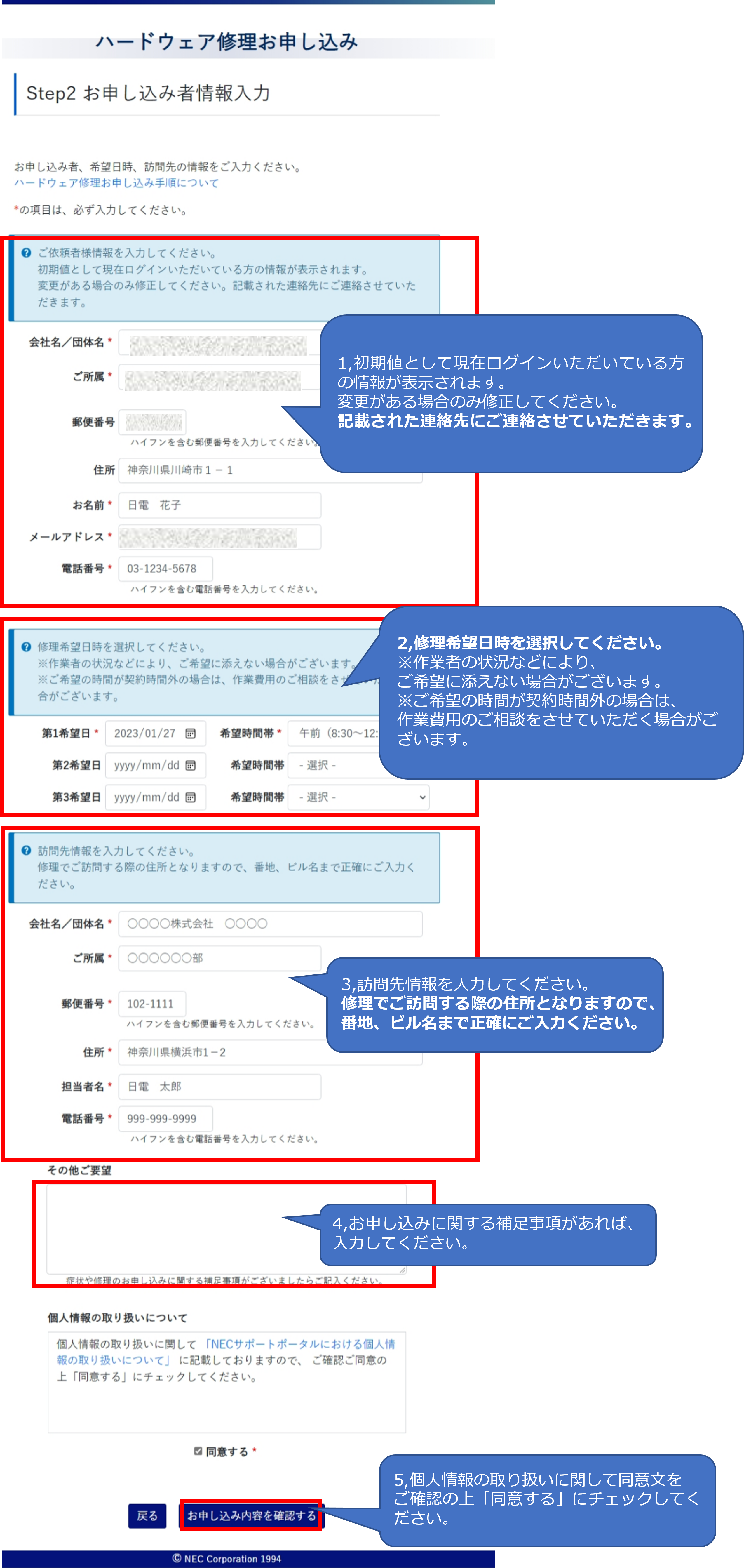 契約、サービスに関するお問い合わせ・内容入力: 契約、サービスに関するお問い合わせ | NEC
