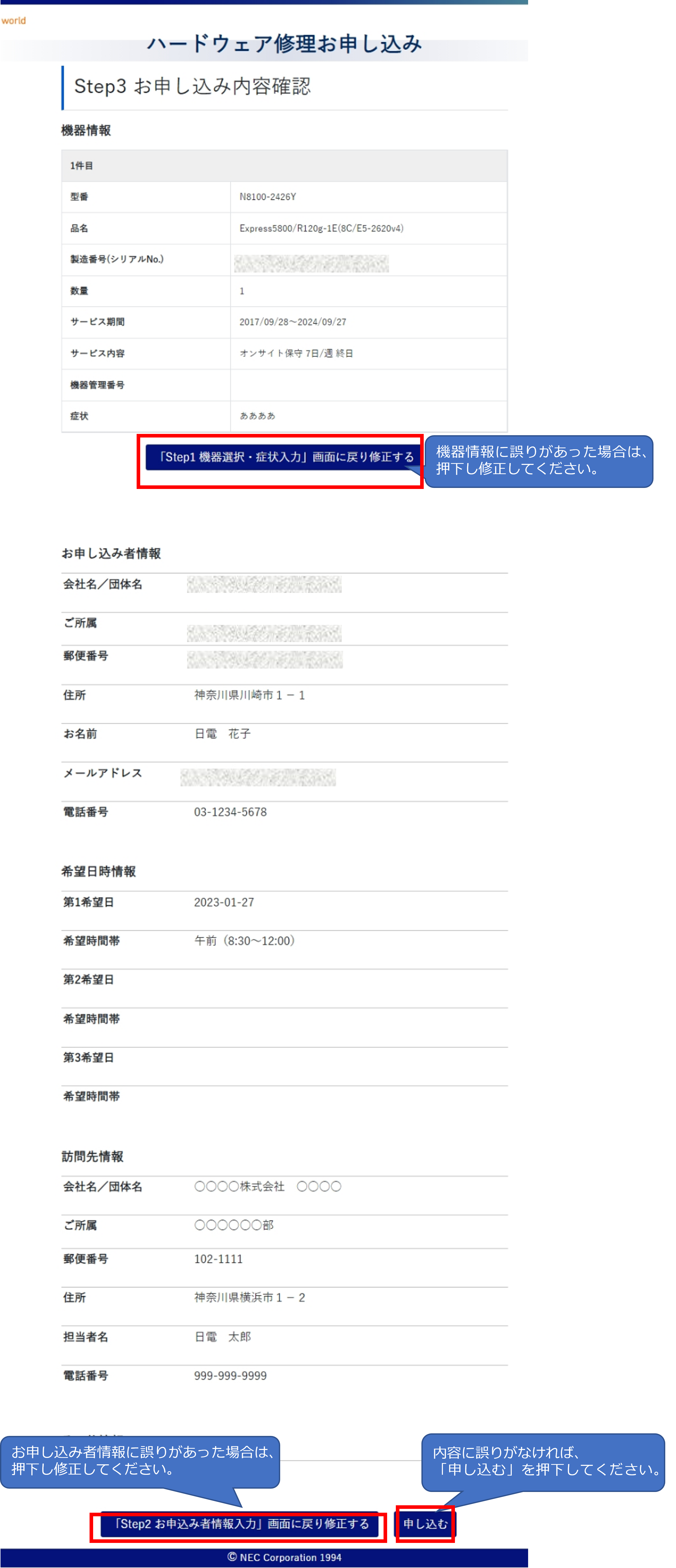 | ※3 | ネットワーク製品はこちらからお申し込みいただくことはできません。 修理お申し込み方法については、契約書(サービス仕様書または契約条件)をご参照ください。