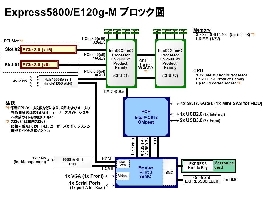 | 2x USB3.0 (2x 前面(TypeA))*3、1xUSB2.0 (1x 内部(Box 10pin)), 1x シリアルポート (RS-232C規格準拠/D-Sub9ピン, シリアルポートA, 1x背面) 4x 1000BASE-T LANコネクタ (1000BASE-T/100BASE-TX/10BASE-T対応, RJ-45, 4x 背面) 1x マネージメント専用LANコネクタ (1000BASE-T/100BASE-TX/10BASE-T対応, RJ-45, 1x 背面) |