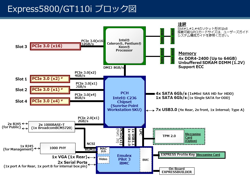 Express5800/GT110i スペック詳細/アーキテクチャ図