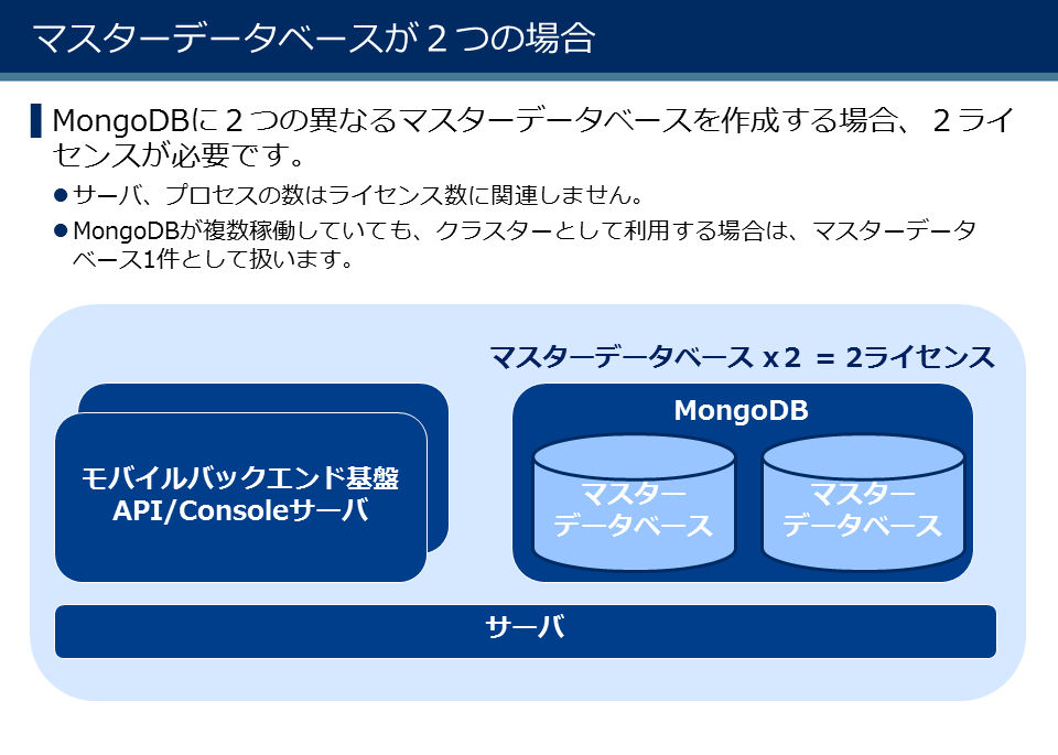 システム内にマスターデータベースを複数個稼働させる場合は、ライセンスがマスターデータベース数分だけ必要です。