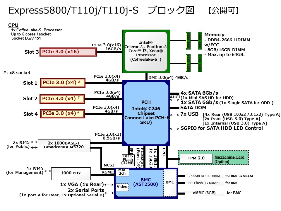 Express5800/T110j スペック詳細/ アーキテクチャ図