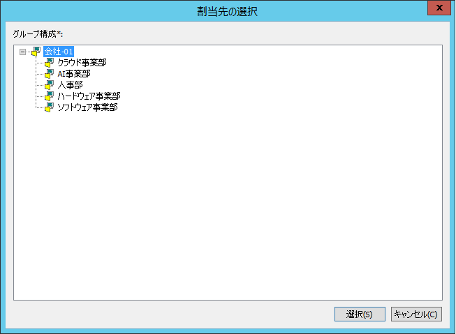 管理コンソールのライセンス契約管理ツリーからソフトウェアライセンスを新規に登録する際、割当先グループの選択を行おうとしても、[割当先の選択]画面に資産グループが表示されません。