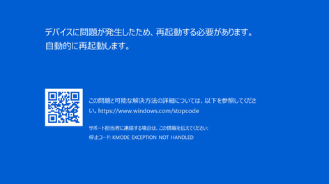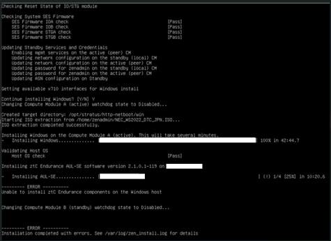 WindowsおよびAULのインストールにおいて、コンピュートモジュールAの Windows側の画面が、下記のブルースクリーン画面や、画面が真っ暗の状態で固まってしまい、処理が進まなくなることがあります。