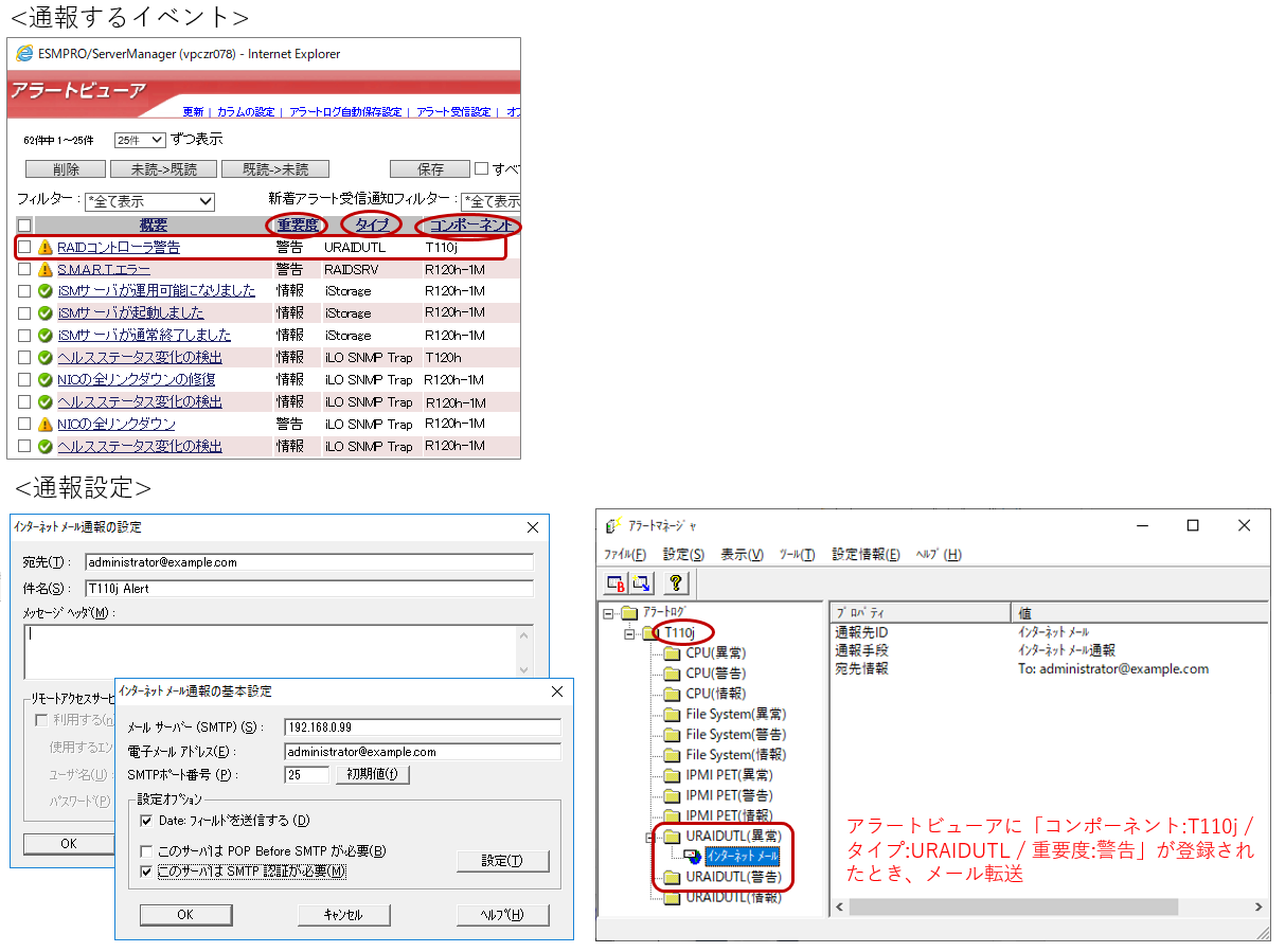 【Express5800/iStorage NS】Express5800シリーズおよびiStorage NSシリーズにおけるメール通報の実現方法