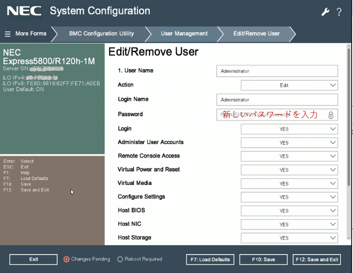T110j,T110kなどのBMCやEXPRESSSCOPEエンジン3では、Server Configuration UtilityにてBMCを初期化してログインアカウントを再設定します。