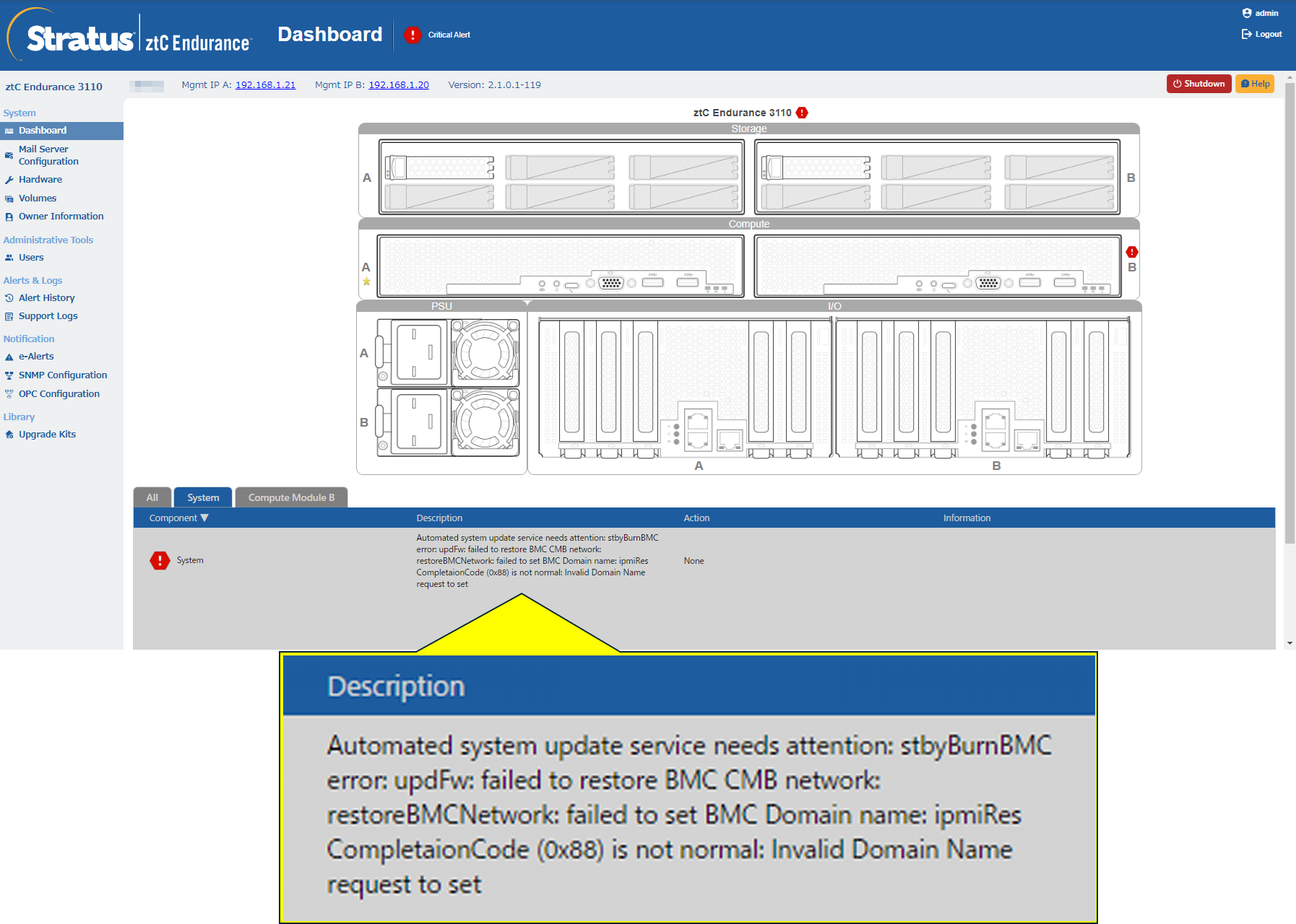 アップデートしましたが、システムの状態が Critical Alert からSystem is Healthyに戻りません。